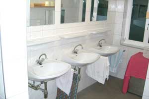 Zwei getrennte Sanitärräume mit Toilette, Dusche und mehreren Waschbecken sorgen dafür dass niemand schmutzig nach Hause kommt.